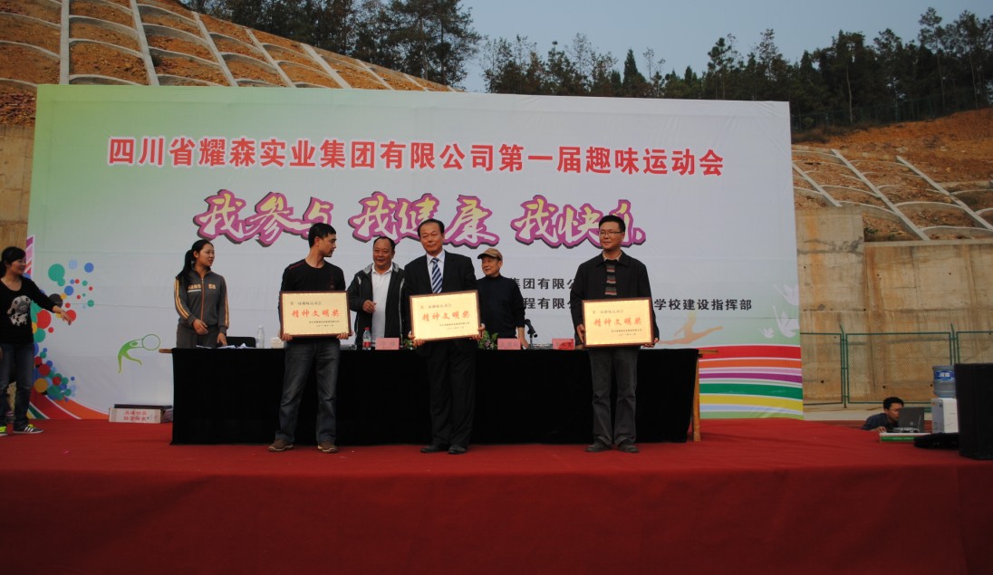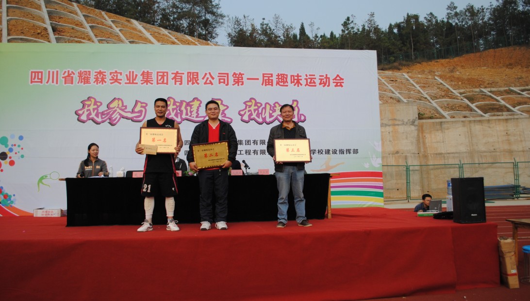 2011年11月26日,伴着暖暖的冬日阳光,四川省耀森实业集团有限公司第一届趣味运动会团体赛总决赛在绵阳教育园区外国语实验学校运动场隆重举行。集团公司副总经理邱禄参加运动会并致开幕词,参加本次运动会的领导还有:集团公司副总经理王荫庭、董事长助理黎焰、光耀建司技术总监李永宽。整个运动会热闹非凡,充满欢声笑语。