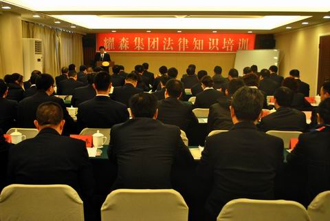 为增强广大员工的法律意识,提高法律事务综合管理技能,2011年2月25日上午,耀森集团在绵州开元酒店举办法律知识培训,来自集团公司的中层及以上领导干部、员工代表60余人参加了培训。