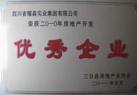 2011年1月11日,在刚刚结束的三台县房地产协会2010年年会上,四川省耀森实业集团有限公司喜获“2010房地产开发优秀企业”称号。