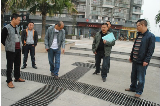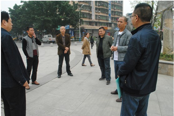 江油金外滩项目的市政广场—金轮广场,在对广场损毁设施进行整改施工后,顺利通过江油市城管局及其下属各部门(路灯所、环卫所、绿化所和市政公司)的验收,于2013年11月6日正式实现管理移交。其整改施工历时月余,得到了公司工程部和物资管理中心的大力支持和配合。(图为:2013年10月24日的金轮广场管理移交初验现场)