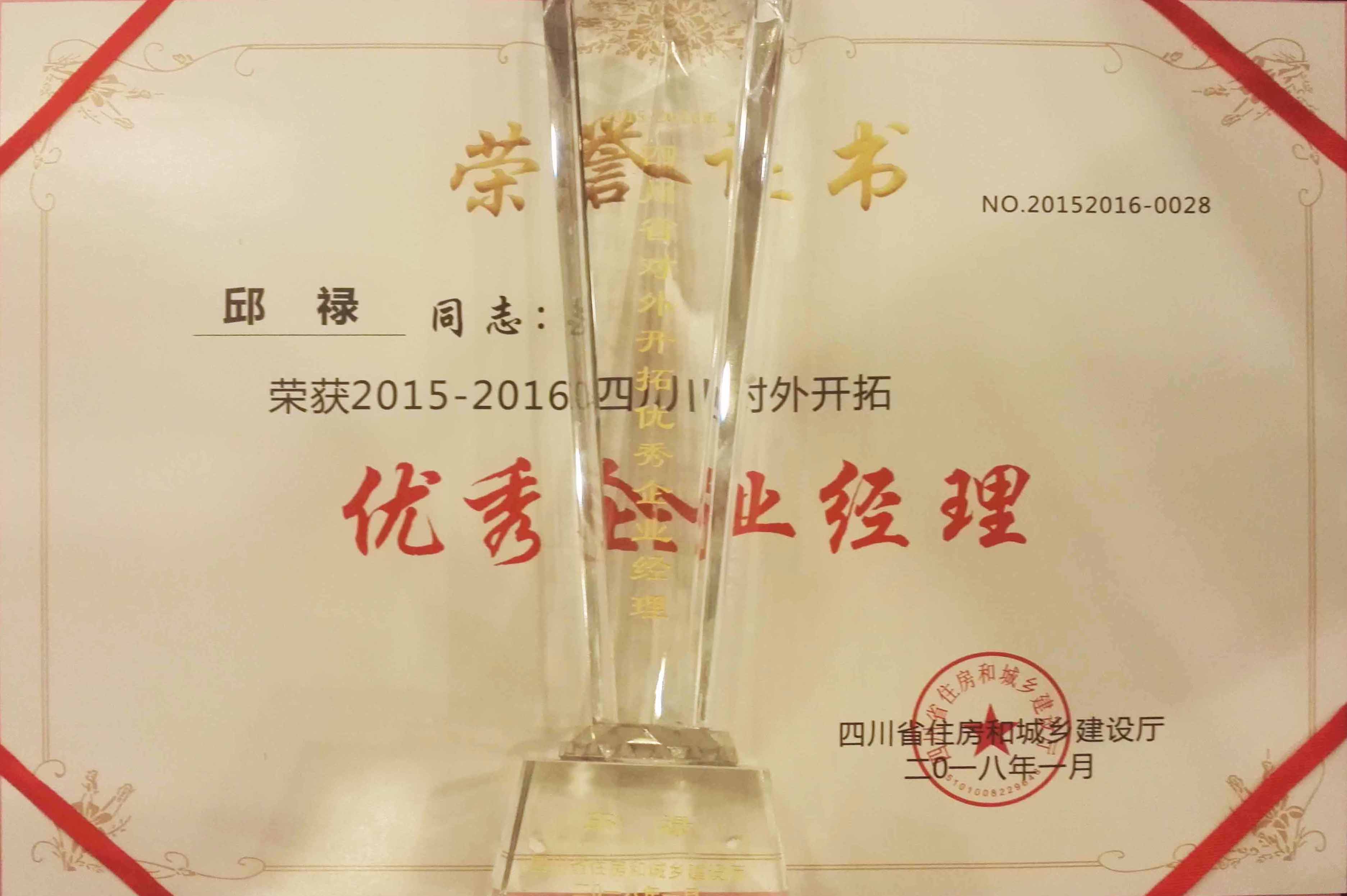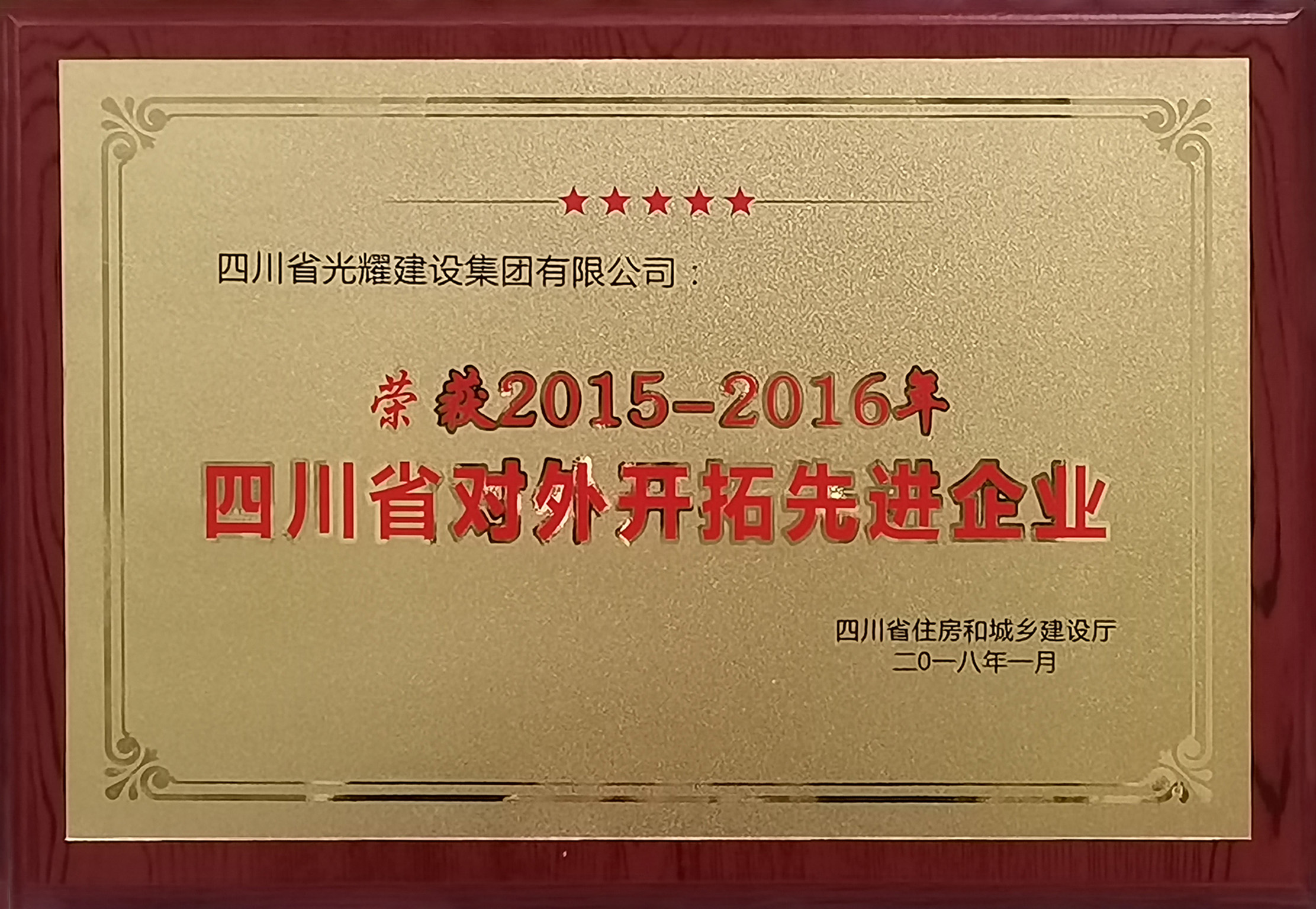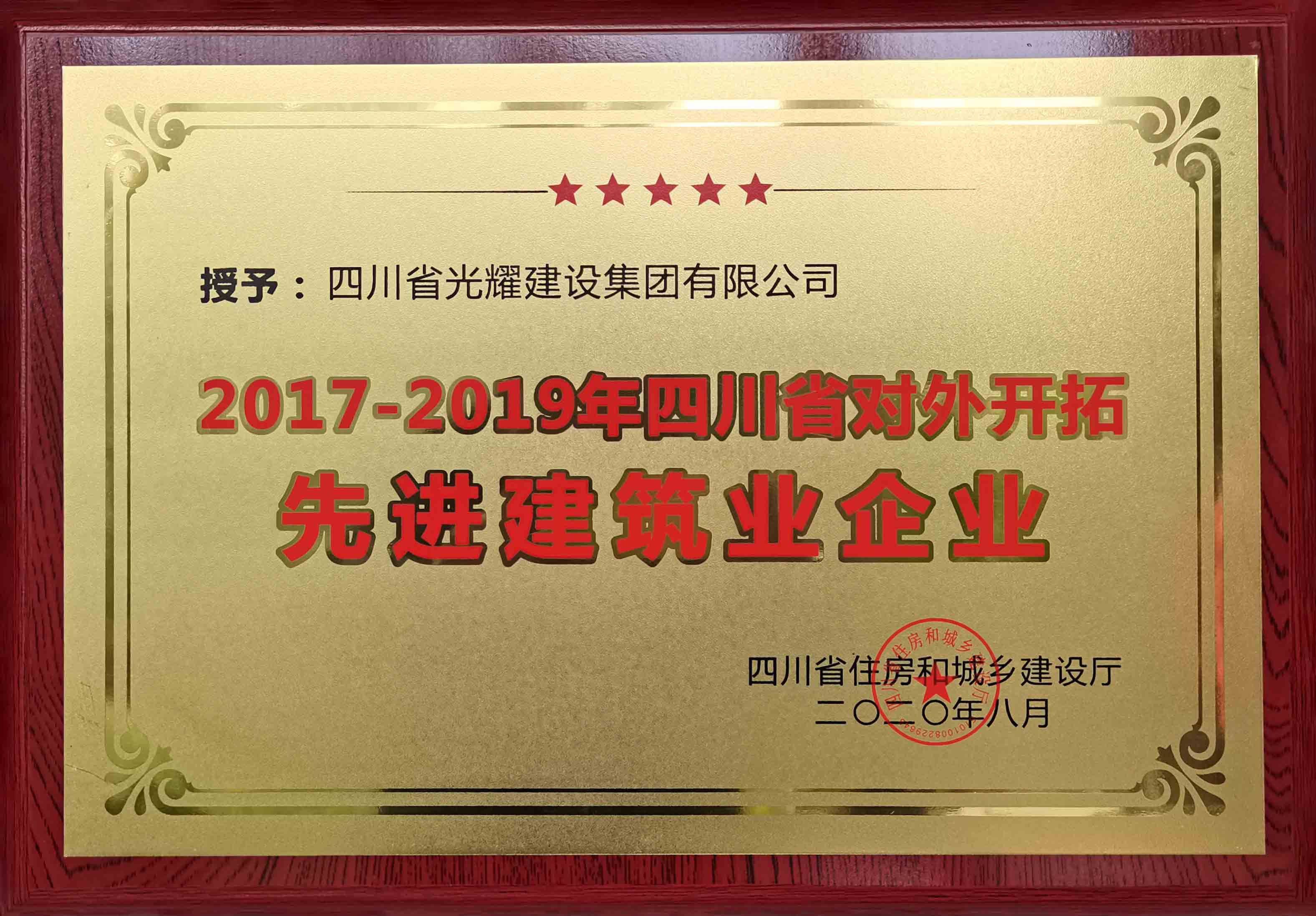 喜报!继2018年1月光耀建设集团荣获“2015-2016四川省对外开拓先进企业”荣誉称号,邱禄同志荣获“四川省对外开拓优秀企业经理”荣誉称号;2020年8月,公司再次受到四川省住房和城乡建设厅表彰,荣获“2017-2019四川省对外开拓先进建筑业企业”荣誉称号,林涛同志荣获“四川省对外开拓优秀项目经理”称号。